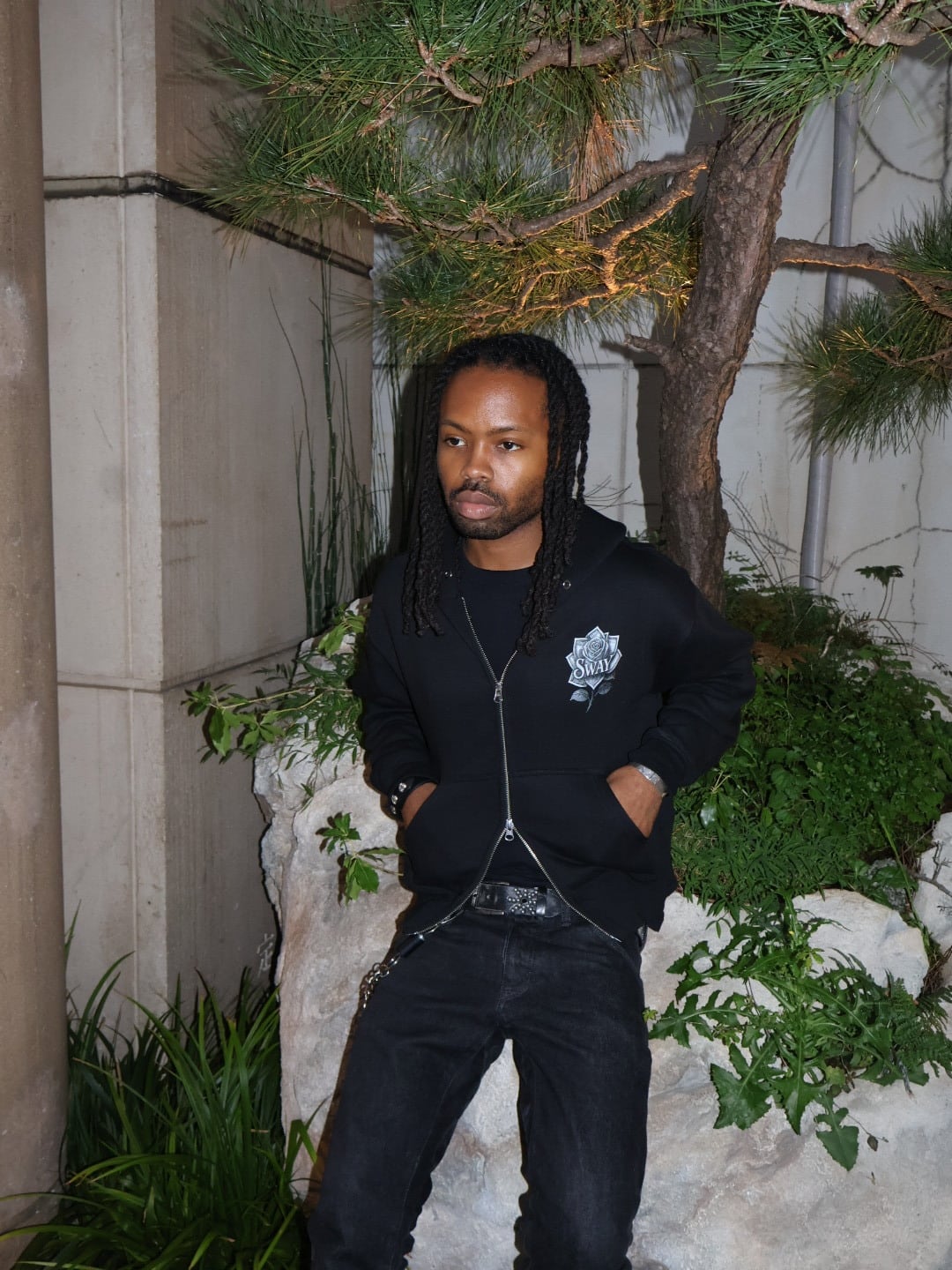 Money Rose Double Zip Hoodie -BLACK-